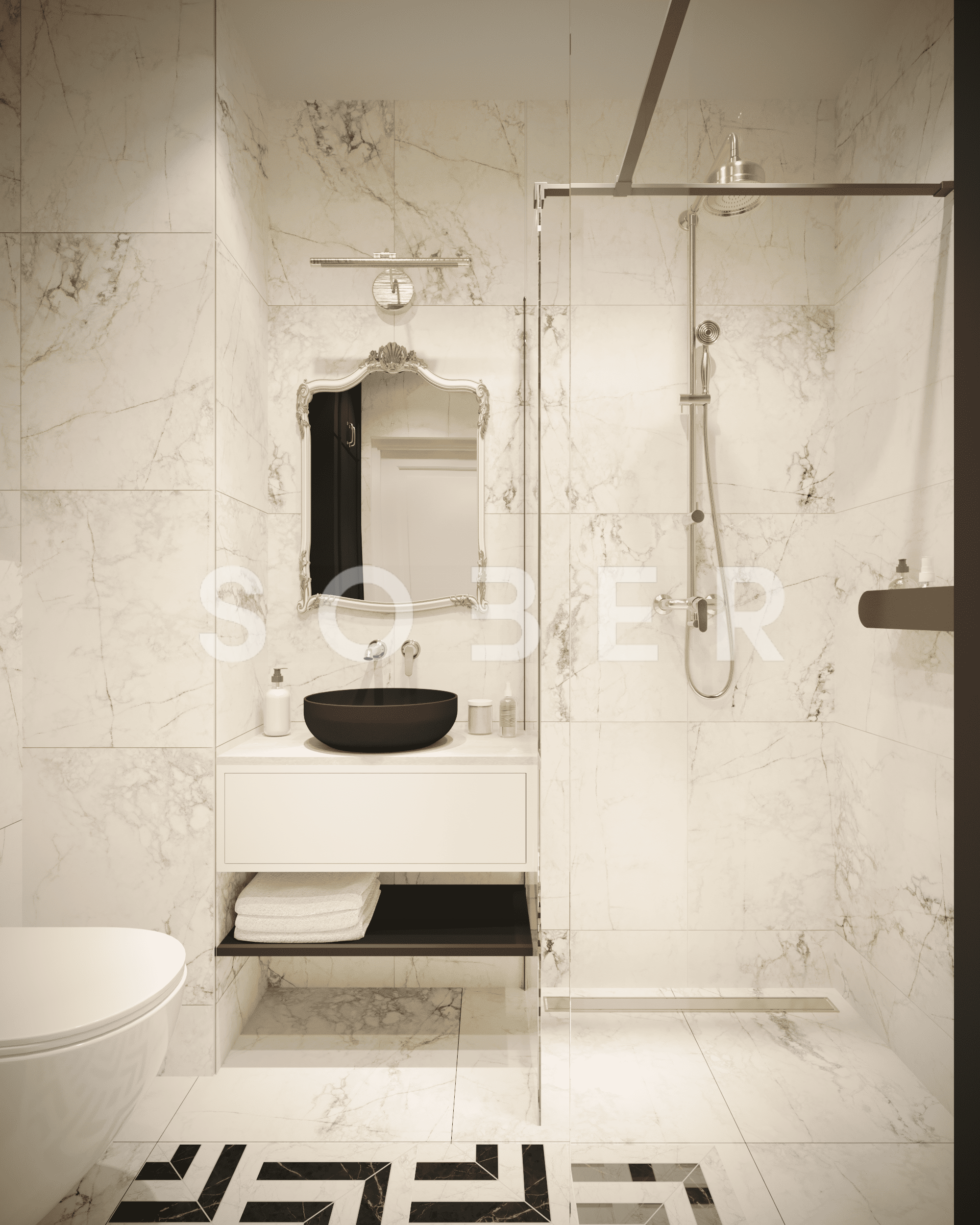 Klasyczna, nowoczesna łazienka w jasnych kolorach