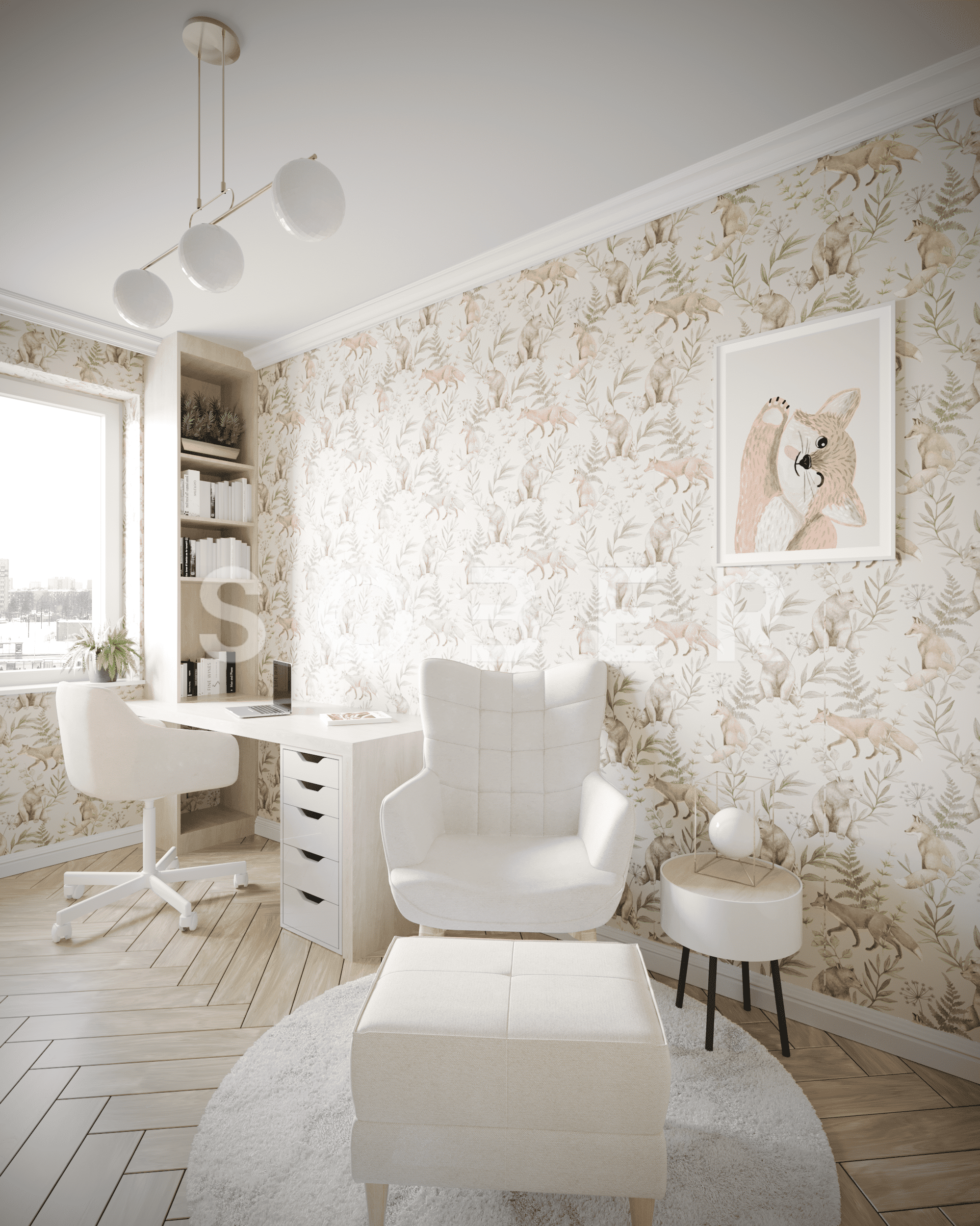 Pokój wykonany dla niemowlaka, lecz z możliwością modyfikacji, pod dorastające dziecko. W pomieszczeniu tym zostały wykorzystane rzeczy z firmy IKEA, nie tylko jeśli chodzi o meble. Jasne, ciepłe pomieszczenie w którym dziecko ma dużo miejsca do zabawy i nauki.